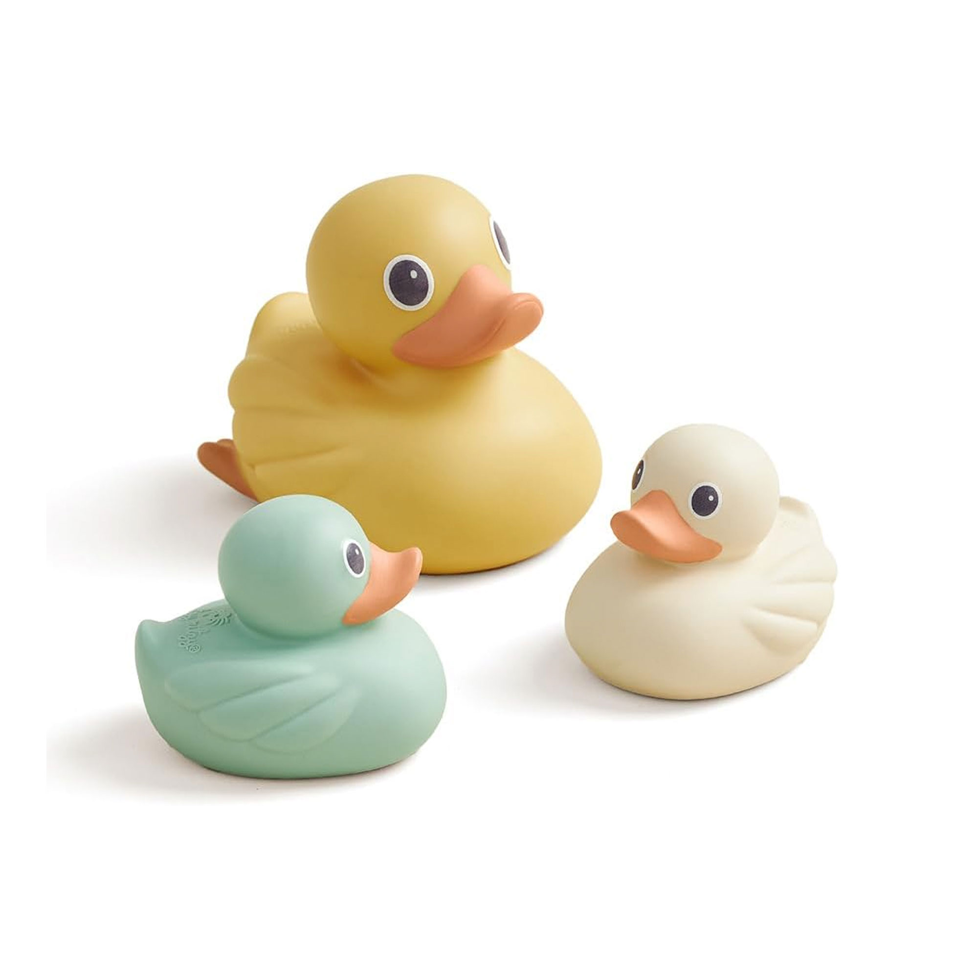¡Patito feliz! ¡Diviértete flotando con tres miembros de la Familia Itzy Ducky! Hechos de material suave y flexible en colores modernos, estos patitos tienen un diseño impermeable que previene la formación de moho.