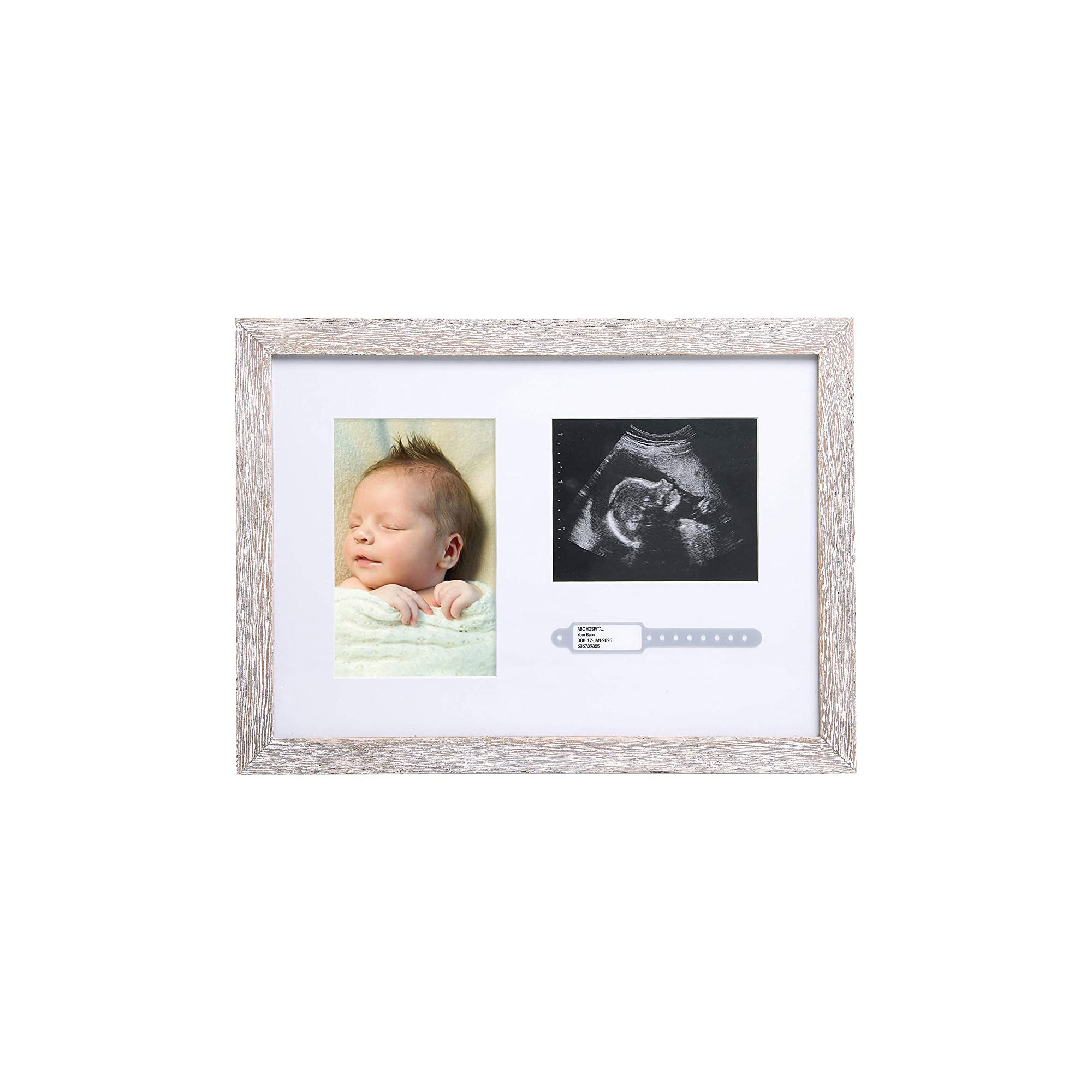 • Muestre la foto, la ecografía y el brazalete del hospital de tu recién nacido en un preciado marco de recuerdo