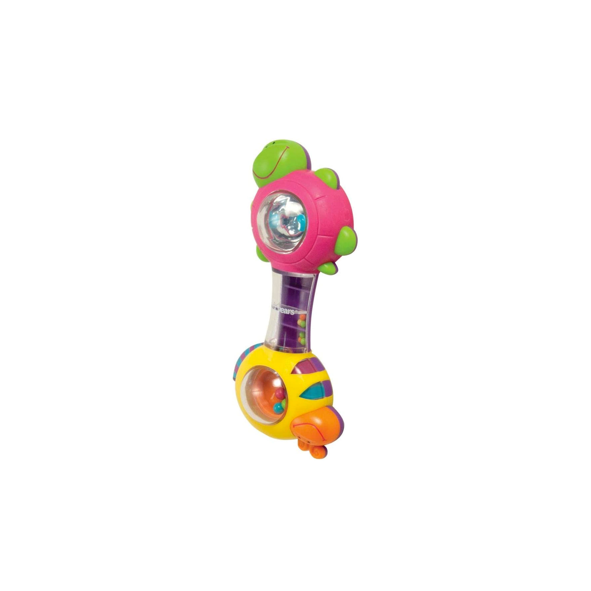 El sonajero Shakin’ Shells tiene el tamaño y la forma perfectos para las manitas de tu bebé con colores y patrones de diferentes tamaños.